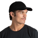 100% cotton twill Double washed before and after construction Unstructured Low profile Six panel 360 degree pro-stitch at the bottom Pre-curved brim Unique raised bean stitching on the brim Velcro clusure dyed to match